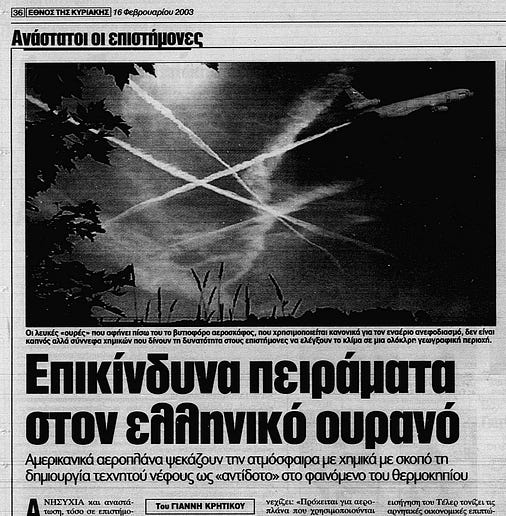 Συμπέρασμα: Έχουμε καταντήσει οι ουραγοί των ουραγών σε φόντο υπερψεκασμένων ουρανών ... Αεροψεκασμοί, βεβαίως, γίνονται και σε άλλες χώρες, ευρωπαϊκές ή μη ² , αλλά όχι με τέτοια συχνότητα, όπως στην Ελλάδα, όπου το φαινόμενο είναι σχεδόν καθημερινό .